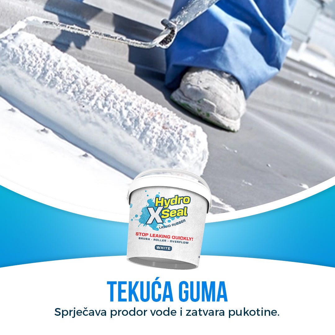 Hydroxseal white je bijela tekuća guma koja sprječava prodor vode i začepljuje pukotine na oštećenim površinama. Nanosi se u tekućem stanju, a njegova primjena je jednostavna. Vrlo je izdržljiva i elastičana, pogodana za unutarnju i vanjsku upotrebu. Uspješno se koristi na raznim površinama poput žbuke, cigle, betona i pločica. Otporana je na vlagu, kišu, snijeg, udarce tuče, UV zrake i ekstremne temperature.